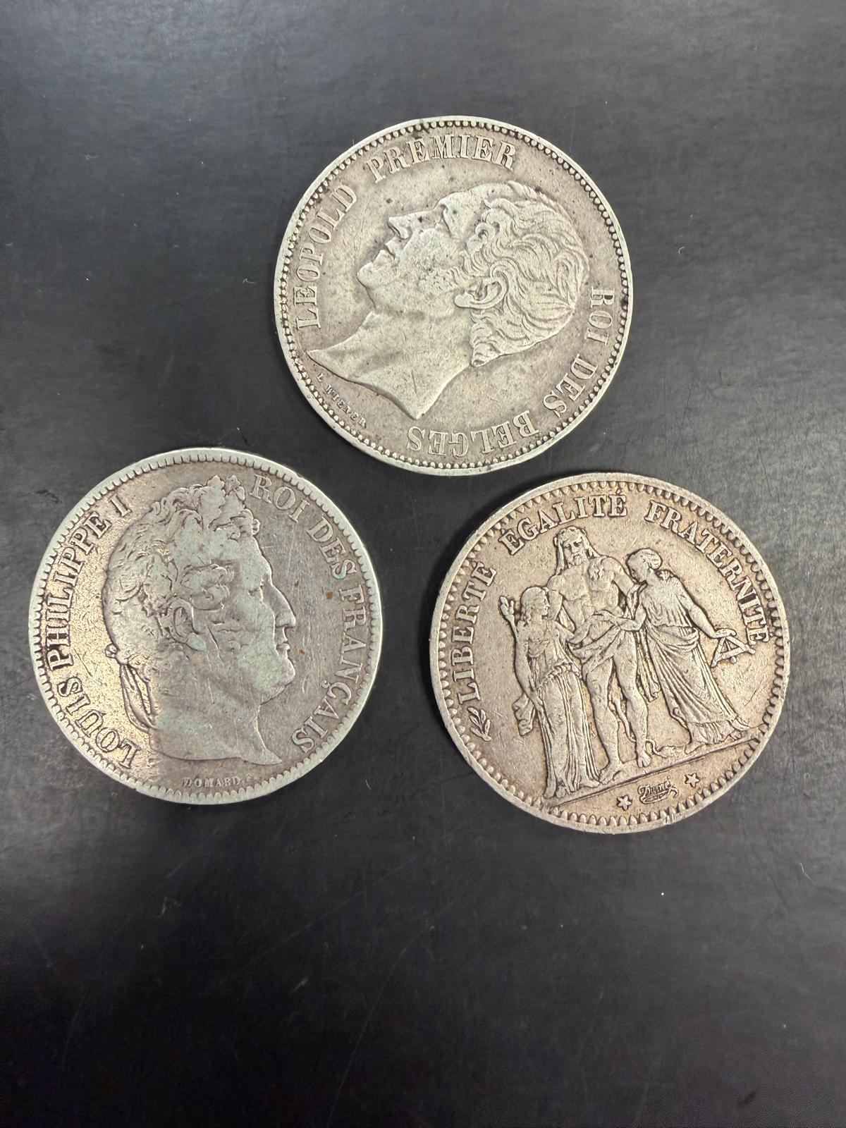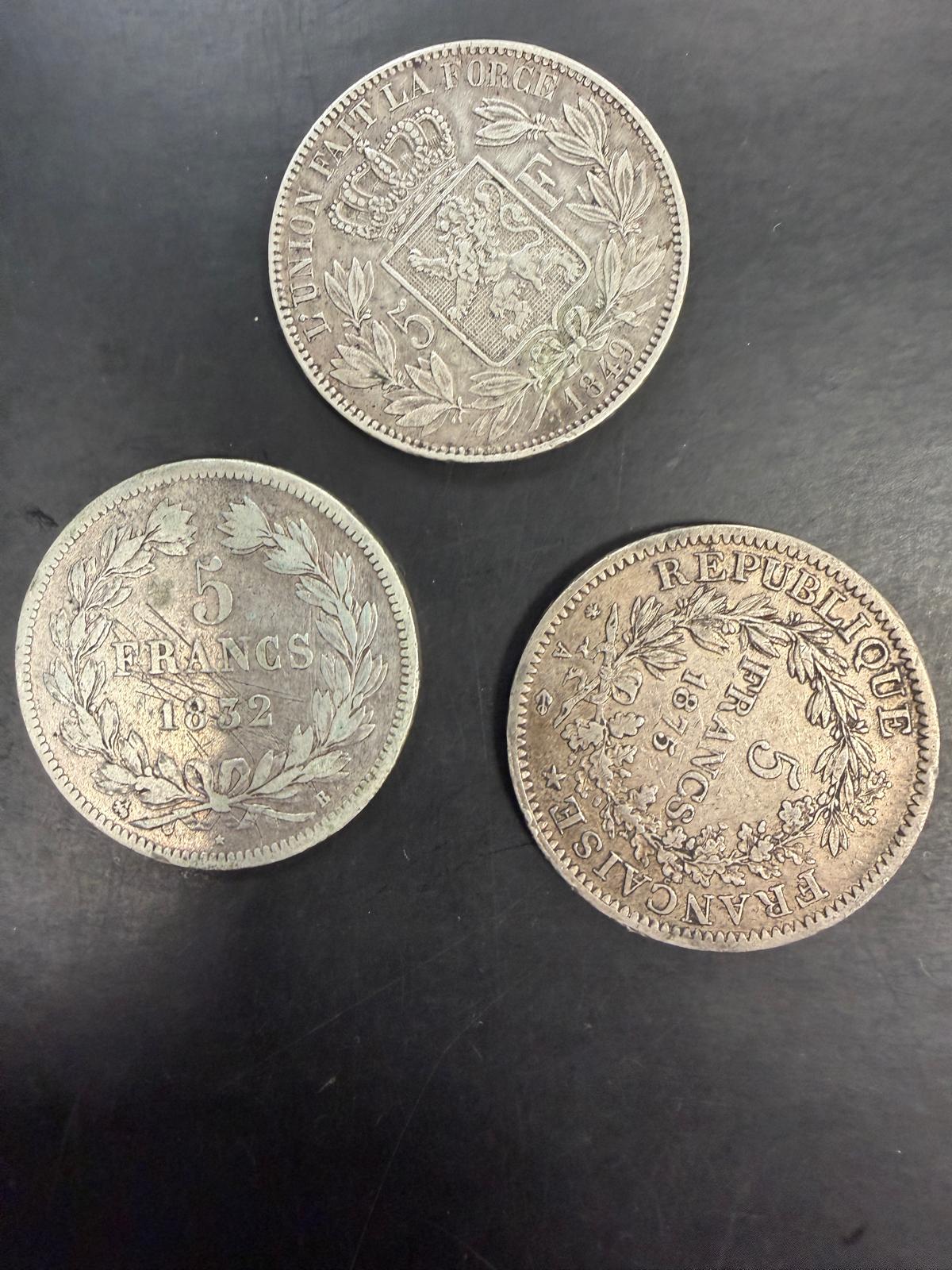 Lot de 3 monnaies de 5F XIXème France et ou Union Latine – Photo générique.