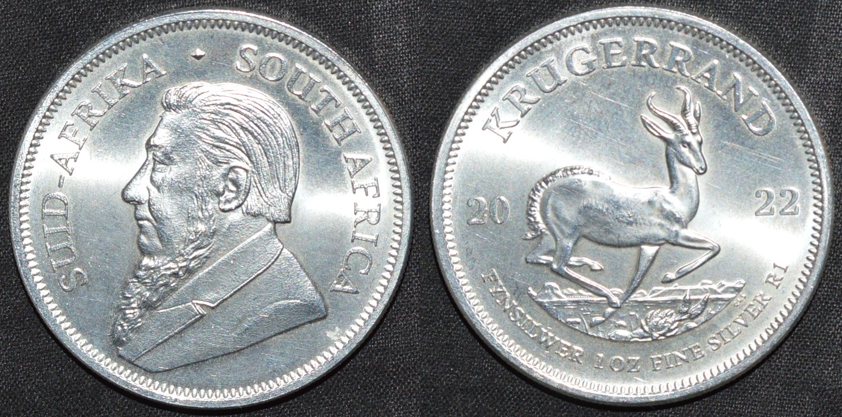 Revers : KRUGERRAND / (Date) / FYNSILWER 1 OZ FINE SILVER R1 – Un spingbok bondissant
